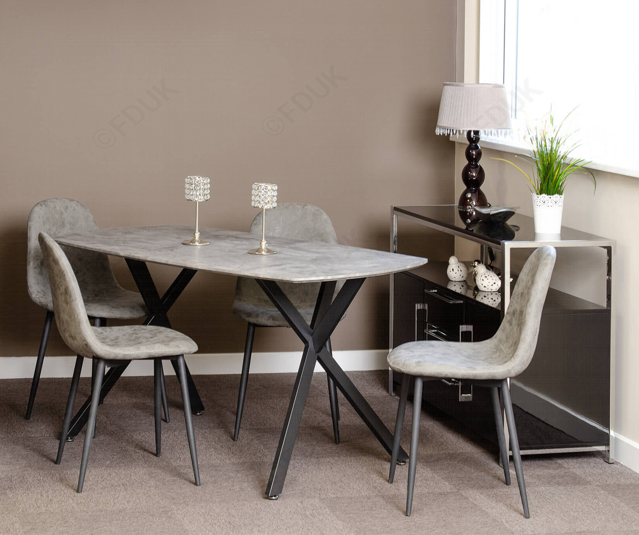 This ultra-modern dining table will look great in any modern dining room. Whist its offers the concrete look it is light weight making it easy to move around your home. The concrete top is mixed with a unique metal frame that finishes off the table perfectly. This dining table is supported by metal frame with legs which creates both a strong structure and modern design element and this dining table will suit with any dining chairs.