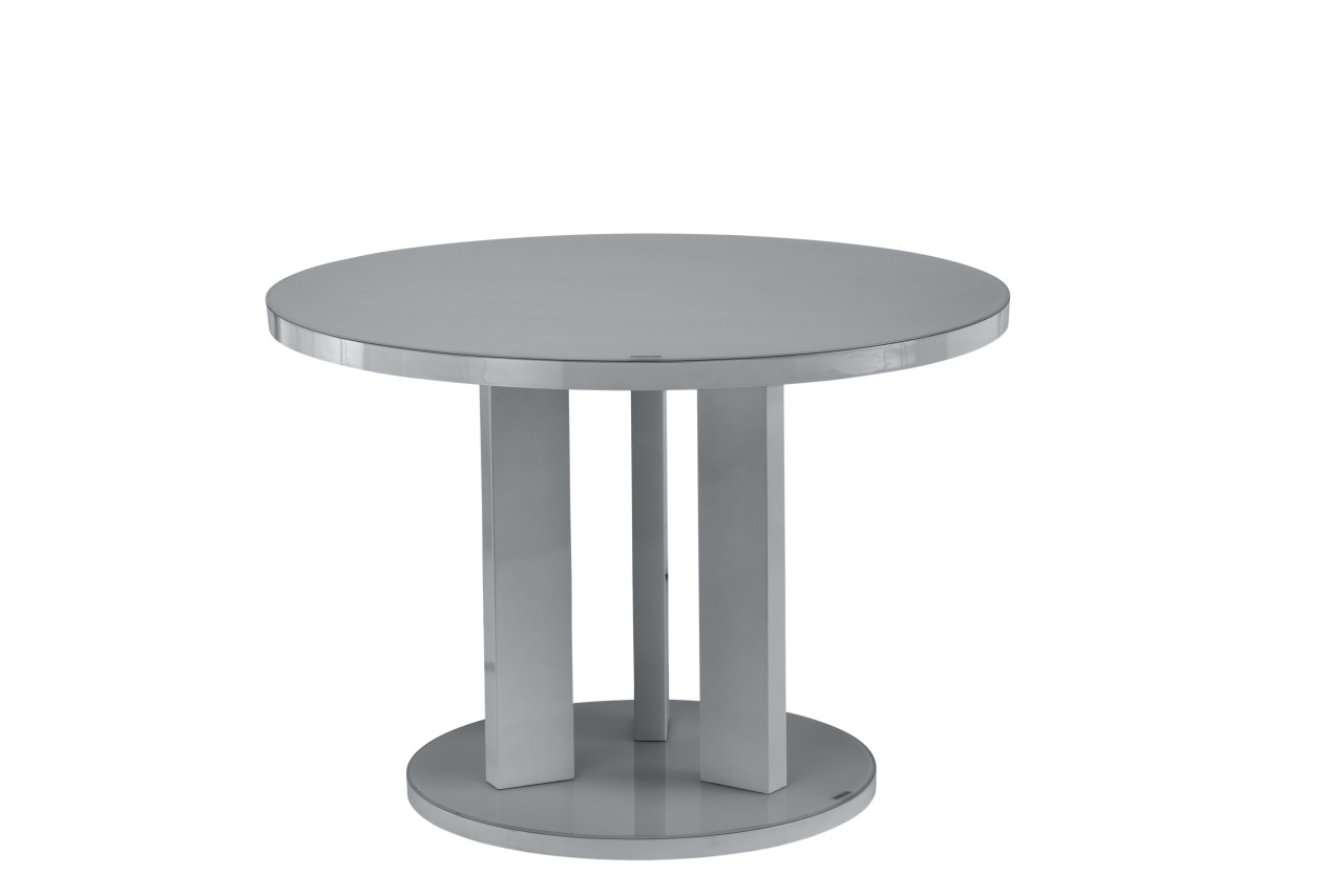 The Elly features a glass on gloss Grey tabletop and ultra-modern polished chrome base - effortlessly channelling modern contemporary cool whilst seating up to 4 people comfortably.