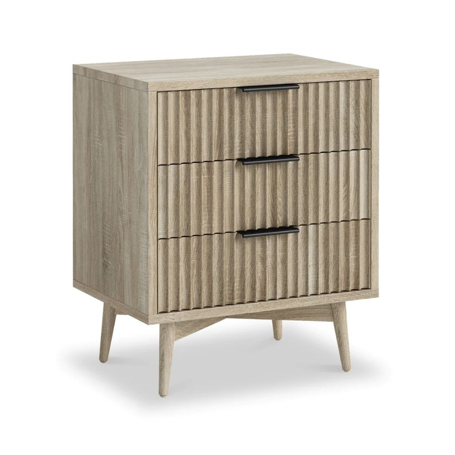 Fill your home with furniture that catches the eye but also keeps your space feeling calm and uncluttered.Featuring a beautiful fluted front design that very much nods to the 70's.The Enzo range is a contemporary design that will bring a fresh twist to your home.The wood is coated in a natural stain for durability and to create a contrast, we've incorporated a soft wooden leg and black metal handles for an on-trend, statement finish.