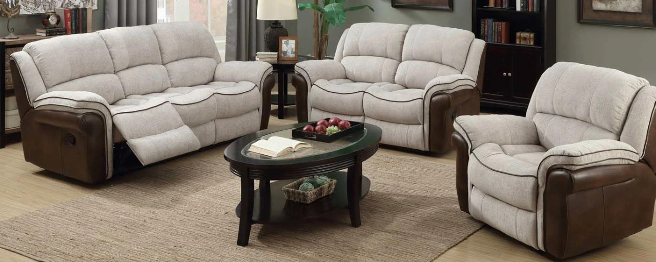 Farnham Fusion suites are the next generation of our very popular Farnham reclining models. Farnham Fusion offers the same level of comfort and durability as the original Farnham collection, but has added luxury by fusing Leather air and Fabric material to create a suite that offers the highest levels of comfort and relaxation. A full reclining suite with a high rise back to support the head and neck. All models are available as 3 seaters, 2 seaters and armchairs. Farnham Fusion suites are available in three colours, Mink/Tan, Grey/Grey and Taupe/Tan. A perfect combination of style and durability that will stand the test of time.