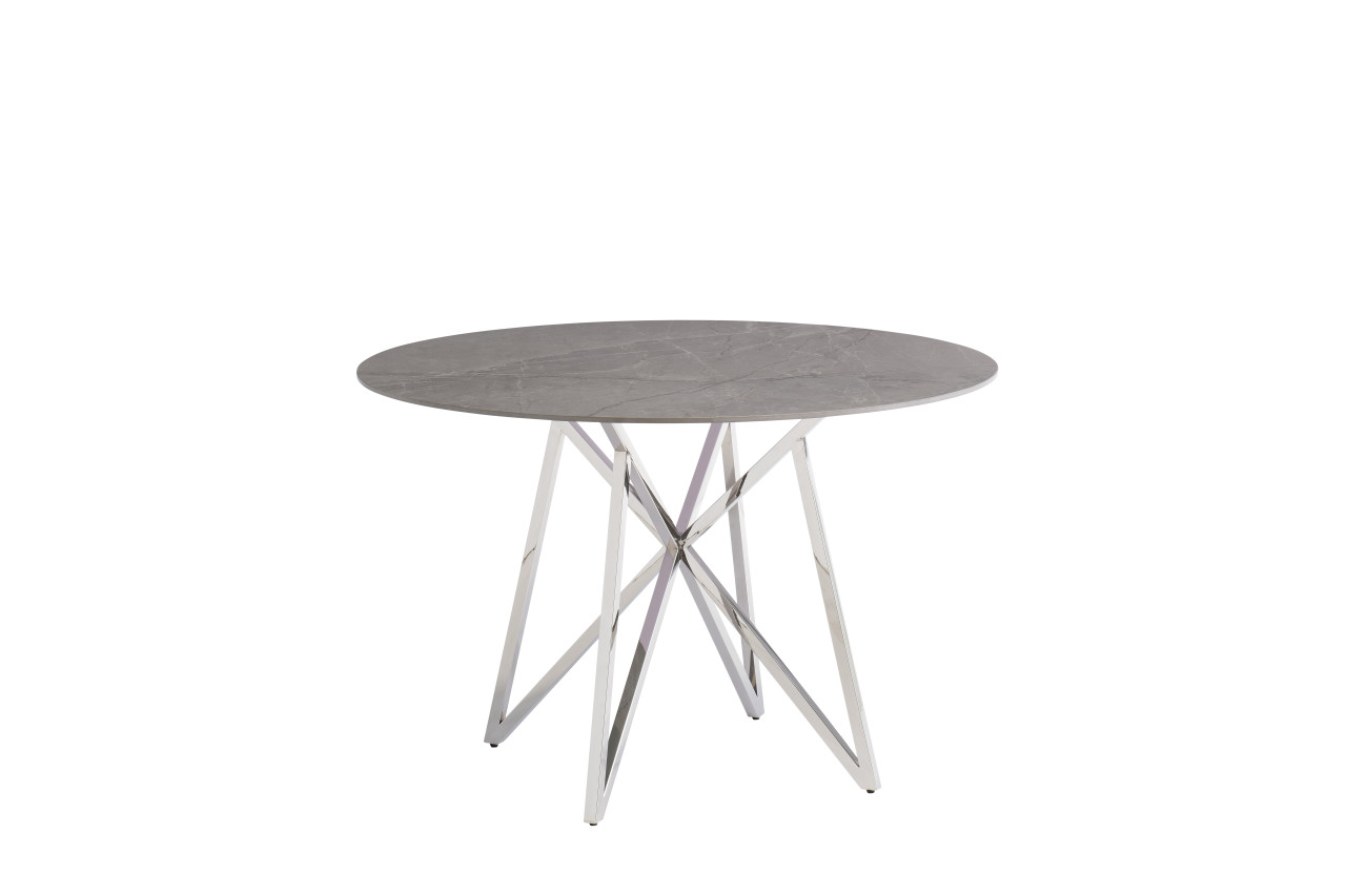 Add a touch of glamour to any kitchen or dining space with this round Grey Sintered Stone topped dining table with a contemporary polished stainless steel design-feature base.This table comfortably seats up to 4 people.
