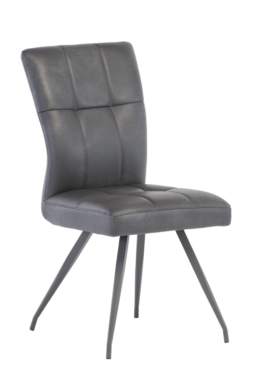 A stunning high-end dining chair with a grey patina PU front and mineral grey fabric back.Perfectly complemented with a grey powder coat frame.