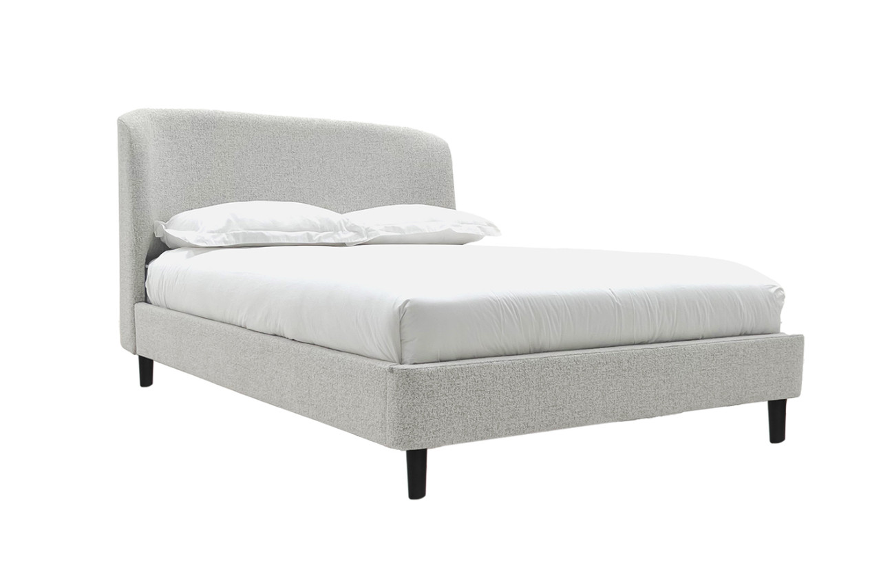 Create a cozy and stylish bedroom with the Layla Grey Bed.Elegant Curved Headboard, Luxurious Boucle Fabric, Supportive Sprung Slats, Solid Black Wooden Legs.