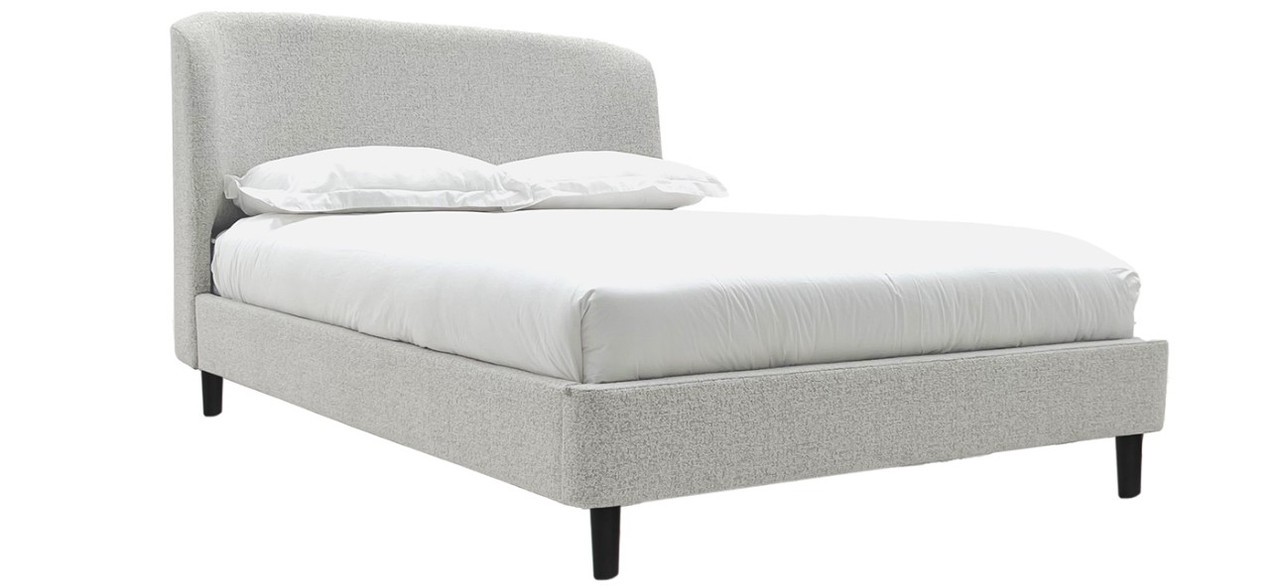 Create a cozy and stylish bedroom with the Layla Grey Bed.Elegant Curved Headboard, Luxurious Boucle Fabric, Supportive Sprung Slats, Solid Black Wooden Legs.