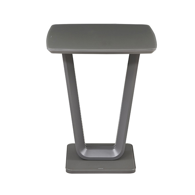This Lazzaro Graphite Bar Table is the perfect addition to any modern Living space.Featuring a sleek brush Metal edging and high gloss finish, it offers chic style and easy cleaning.