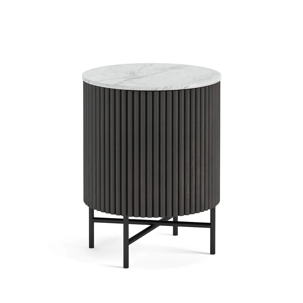 Our Lucas range accentuates its racetrack curves with dynamic ribbing.Multiple finishes provide harmonious contrast, tinting the solid Mango Charcoal and leaving the Marble top a natural hue.The solid Mango flutes are delicately hand sanded before being hand stained to create a smooth streamline finish.The constrasting solid real Marble top makes the unit eye catching, hygienic & incorporates a modern twist to any interior.