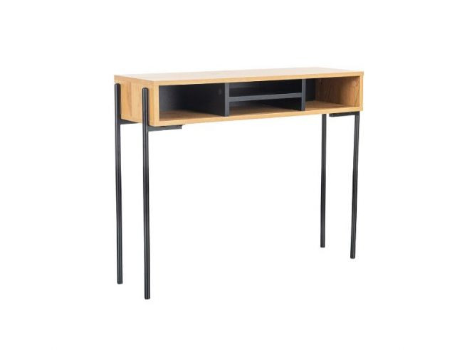 Natural Oak melamine, powder-coated Black metal legs, Black hardware and accents.