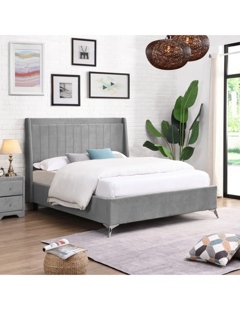 Perfect combination of style and timeless simplicity.The tidy low Footend allows for optimal space to be used in a room. The stylish Chrome feet have been designed to be a feature creating a clear modern look to this Mayo Bed.The slightly winged Headboard has been coupled with a luxury panelled design to create a comfortable backing as well as an aesthetically pleasing look.Available in Grey or Beige.