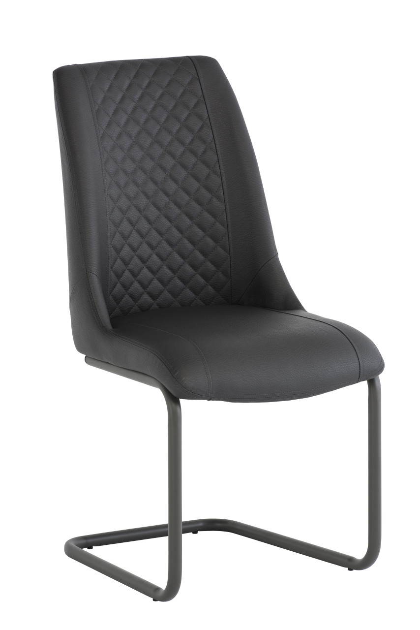 A beautifully tailored Dining Chair in a heavy textured PU with a quilted cross stitch pattern.Finished with a Grey powder-coated cantilever base.Available in Grey or Stone.