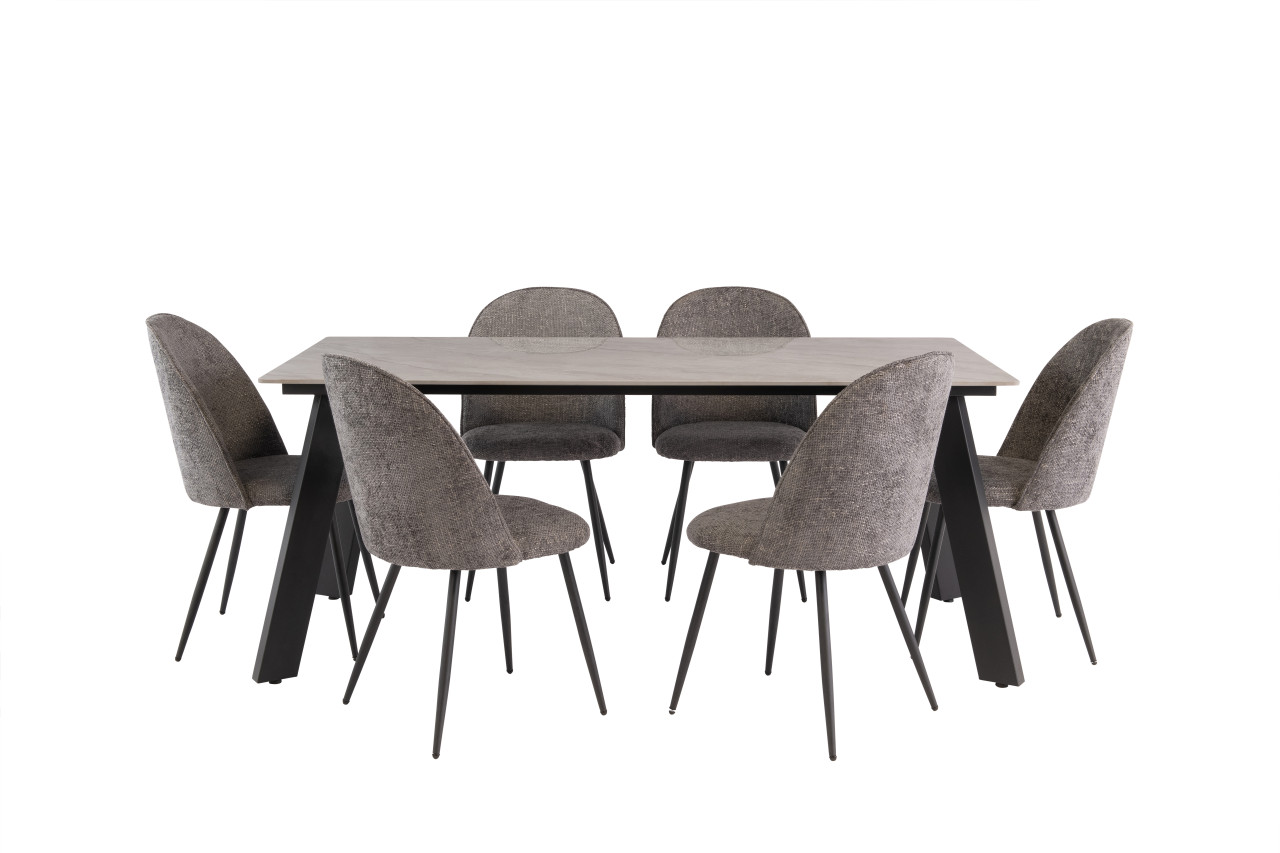 Ruxy Rebecca Grey 1.8M Dining Table + 6 Ramona Graphite Dining Chair