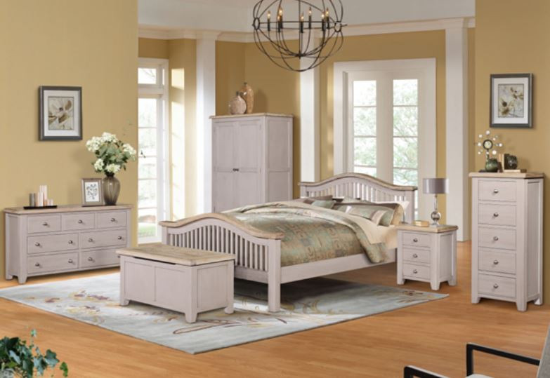The Salou bedroom range is finished in white wash brushed oak. The frames are modern grey with a traditional wood finish. The tops are brushed oak to give a distressed look. The visible wood grain makes this modern range a true classic.