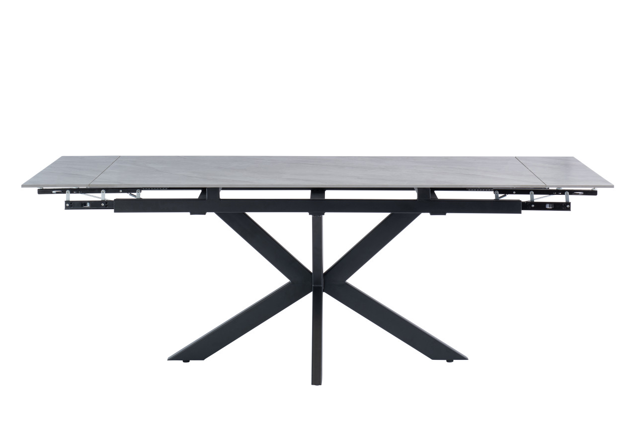Contemporary industrial style with a sleek ceramic finish that's the beauty of the carefully-considered Sultan Rebecca grey dining table.Combining a gorgeous polished grey granite effect Sintered stone top and black powder-coated x-shaped metal base, the bold creative lines of the Sultan looks fabulous in any dining space.This table comfortably seats up to 6 people and can extend to accommodate 8.