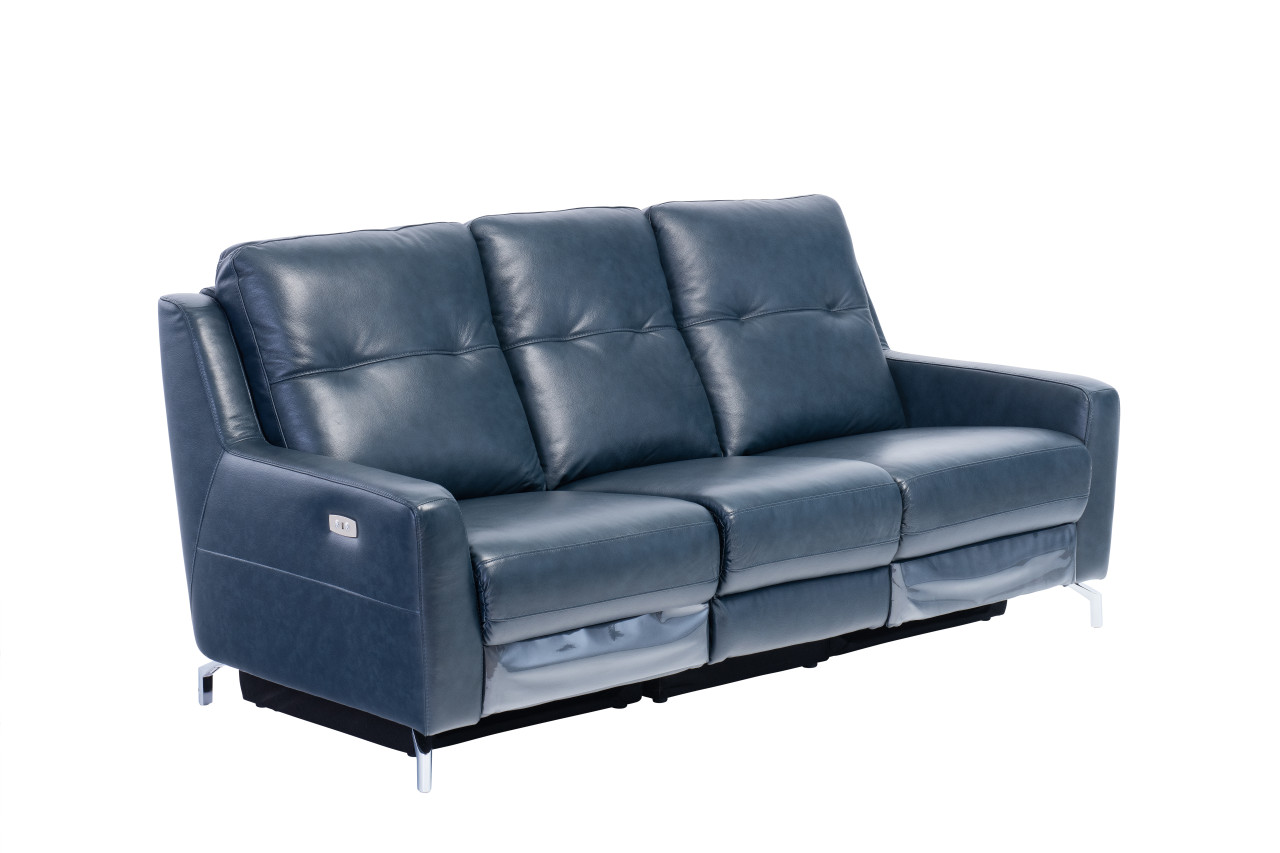 Sleek style and sublime comfort come together in the stunning Windsor range.A masterclass in comfort and style, its soft Blue Leather seats were crafted for sinking into.Deeply cushioned and sumptuously filled with fibre topped, foam wrapped pocket springs, a unique combination of support and exceptional comfort.The Windsor collection guarantees a great look and wonderfully soft sit with electric recliners and USB charging points as standard.Available in Blue, Black or Grey.